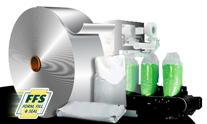 Láminas continuas de polietileno de baja densidad enrolladas sobre un eje que permite su utilización en el sistema automático del tipo FFS (form, fill and seal: formado, llenado y sellado) para sacos de resinas petroquímicas y otros productos a granel. La lámina de polietileno es formada a través del método de coextrusión, el cual permite combinar diferentes materiales en la misma lámina.